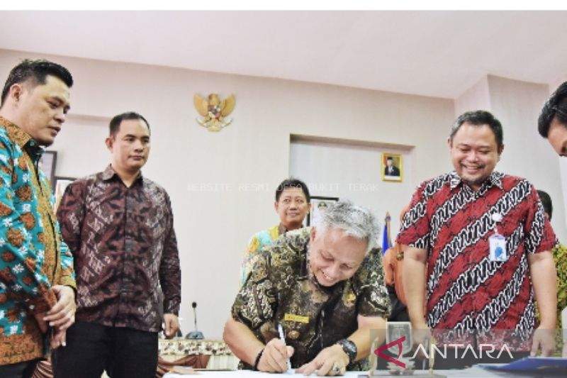 Bupati Bangka Barat Sukirman menandatangani kesepakatan kerja sama dengan BPJS Kesehatan Pangkalpinang dalam program biaya berobat gratis bagi seluruh penduduk Bangka Barat, perjanjian berlaku pada 2023. ANTARA/HO-Diskominfo Bangka Barat