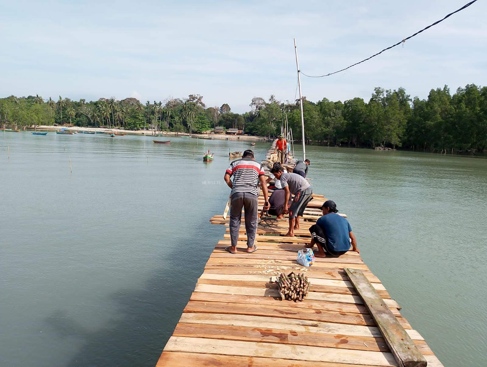 Gotong Royong Masyarakat Nelayan Memperbaiki Dermaga Desa Bukit Terak